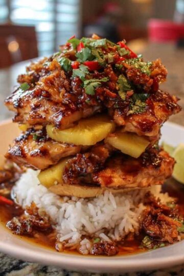 Bright, tropical flavors meet hearty comfort in this Hawaiian Huli Huli Chicken Stack. Juicy pineapple-marinated chicken is grilled until caramelized, then layered over fluffy jasmine rice and finished with fresh fruit, creamy avocado, and a splash of lime. This vibrant dish delivers sweet, savory, and smoky notes in every bite—perfect for weeknight dinners, summer gatherings, […]