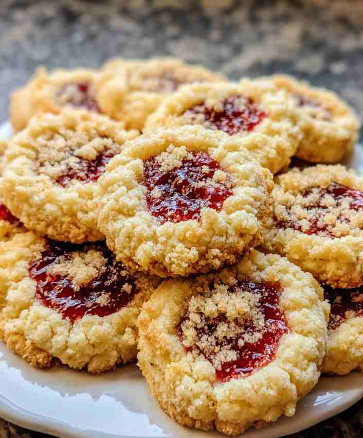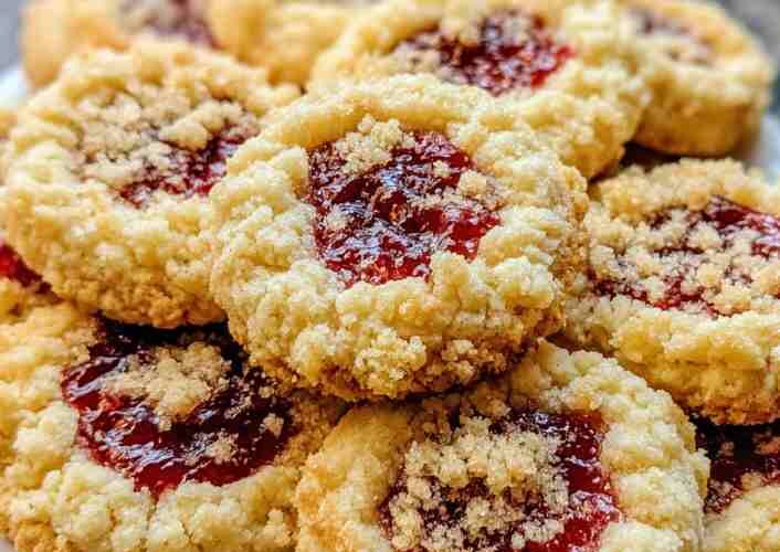 Buttery Raspberry Crumble Cookies with Sweet Jam Filling