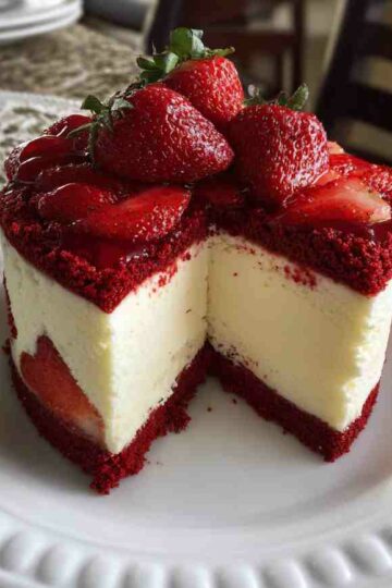 A stunning dessert that layers moist red velvet cake with silky cheesecake and a vibrant strawberry topping—perfect for any celebration. If you’re searching for a dessert that turns heads before the first bite is ever taken, this Red Velvet Strawberry Cheesecake is the one. With its bold red velvet base, ultra-creamy cheesecake center, and glossy […]
