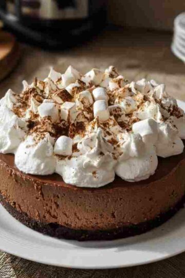 Decadent Hot Cocoa Cheesecake with Marshmallow Whipped Cream