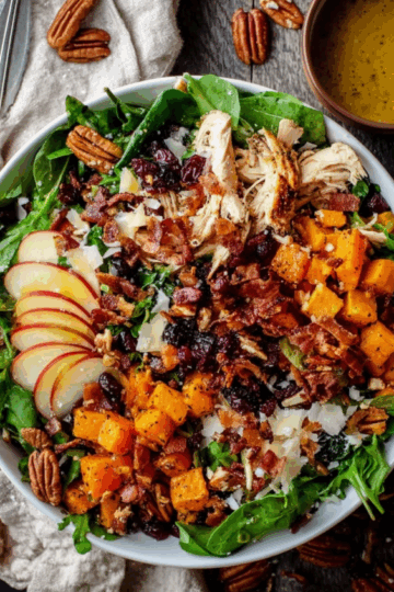 If fall had a flavor, this salad would be it.Crispy bacon. Sweet roasted squash. Juicy apples and nutty Manchego. Every bite feels like that moment you step outside in October and the air smells faintly like woodsmoke and maple syrup. This Fall Harvest Salad takes everything you love about a classic Cobb and gives it […]