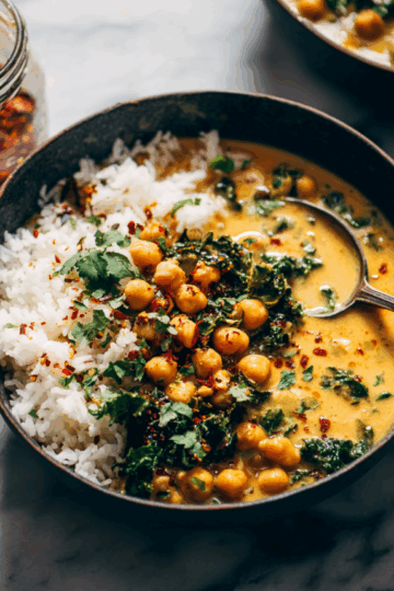 Steph’s Chickpea Curry with Spinach and Rice: Quick & Creamy 20-Minute Dinner