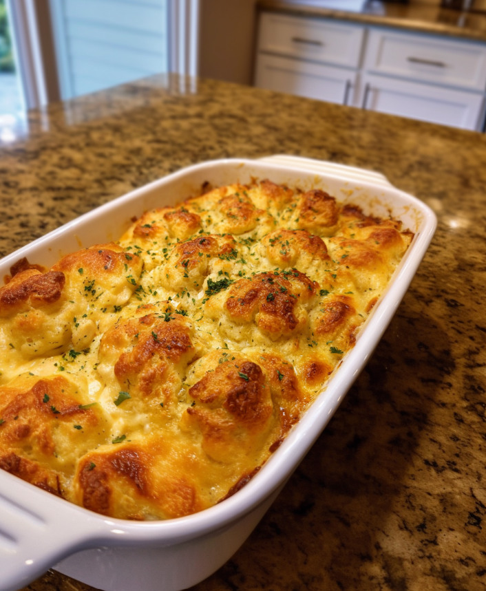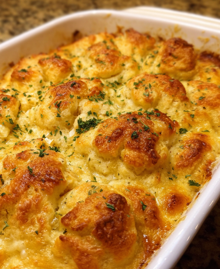 Think of it as chicken pot pie’s laid-back cousin: tender chicken, creamy sauce, golden biscuit topping made from the legendary Cheddar Bay mix. You basically layer, bake, and wait while magic happens. Perfect for weeknights, potlucks, or the kind of day when “comfort” feels like a food group.