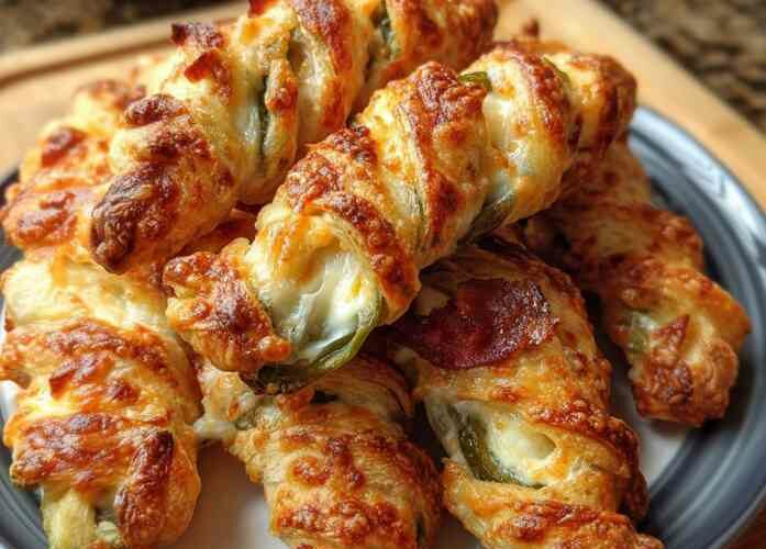 These Cheesy Jalapeno Popper Twists combine creamy cheese, spicy jalapenos, and flaky puff pastry into a bold, crowd-pleasing appetizer. Perfect for parties, game day, or quick snacks, they bake up golden, crisp, and irresistibly cheesy.