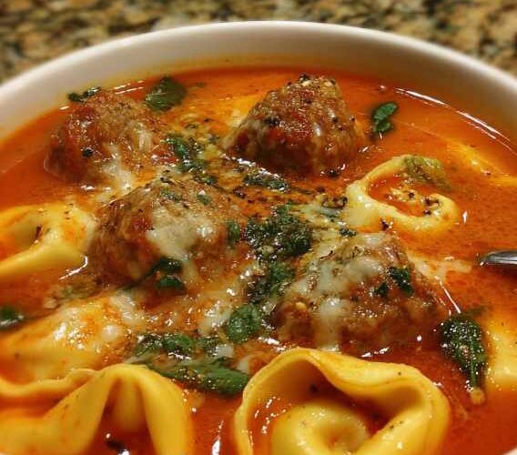 Warm, hearty, and irresistibly comforting, Cheesy Meatball Tortellini Soup is the kind of dinner that brings everyone to the table fast. This one-pot soup combines tender cheese-filled tortellini, savory Italian meatballs, and a rich tomato broth finished with Parmesan for a cozy, satisfying meal. It’s quick enough for busy weeknights, yet comforting enough to feel special, making it a go-to family favorite all year round.