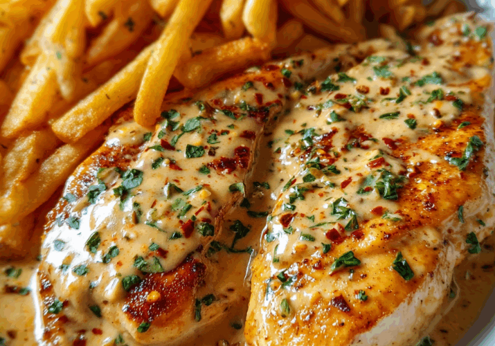 This Chicken Fillet in Spicy, Creamy Garlic-Parmesan Sauce with Fries is one of those meals rich, bold, and just indulgent enough to make any night feel like a mini celebration.