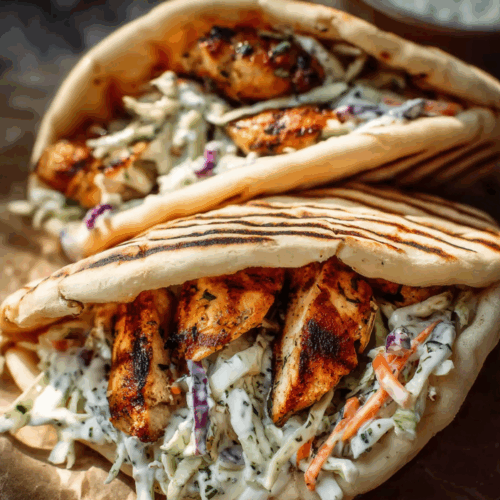 Fresh, tangy, and just the right kind of messy — these Chicken Pitas with Herby Ranch Slaw are the kind of meal that feels indulgent but still checks all the “healthy and quick” boxes. Imagine juicy, golden chicken tucked into a warm pita, layered with creamy ranch slaw that’s got a herby kick and just enough crunch to keep things interesting. It’s the kind of dish that turns an ordinary weeknight into something that feels… well, special — without the effort of a full-blown dinner production.