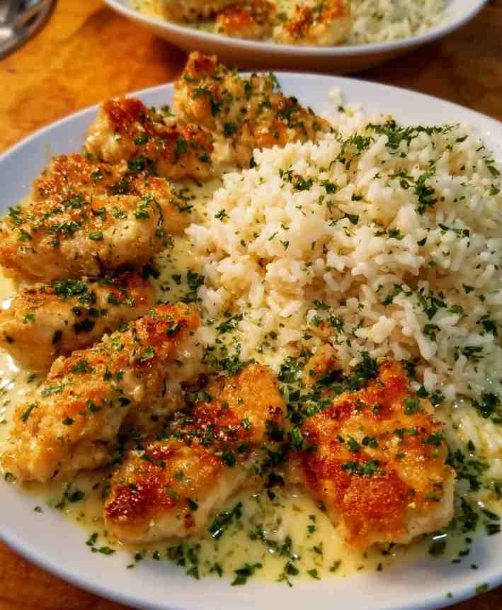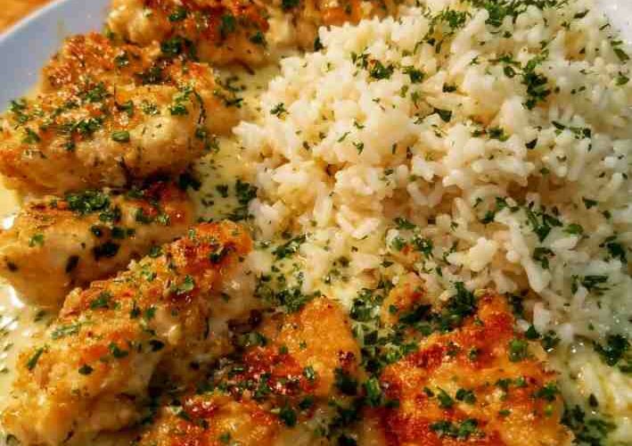 Elevate your weeknight dinners with this Chicken Scampi with Garlic Parmesan Rice—a dish that pairs golden, tender chicken with a zesty garlic butter sauce, served over rich, creamy Parmesan-infused rice. This recipe delivers restaurant-quality flavor with minimal effort and is perfect for cozy family meals or entertaining guests.
