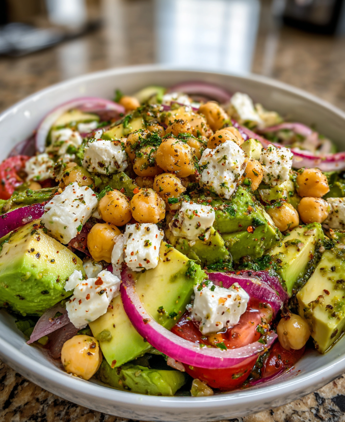 Chickpea Feta Avocado Salad (Mediterranean-Inspired Recipe)
