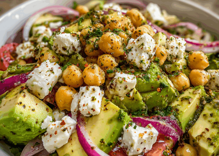 Chickpea Feta Avocado Salad (Mediterranean-Inspired Recipe)