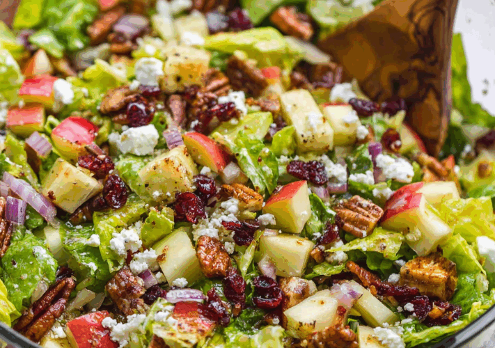 A crisp, colorful, and cozy fall favorite, this Chopped Autumn Salad with Apple Cider Dressing blends the best seasonal flavors into one irresistible bowl. Sweet apples and pears, salty bacon and feta, and crunchy cinnamon-candied pecans meet a tangy apple cider dressing that ties it all together. Perfect for Thanksgiving, fall dinners, or when you’re just craving something fresh and comforting.