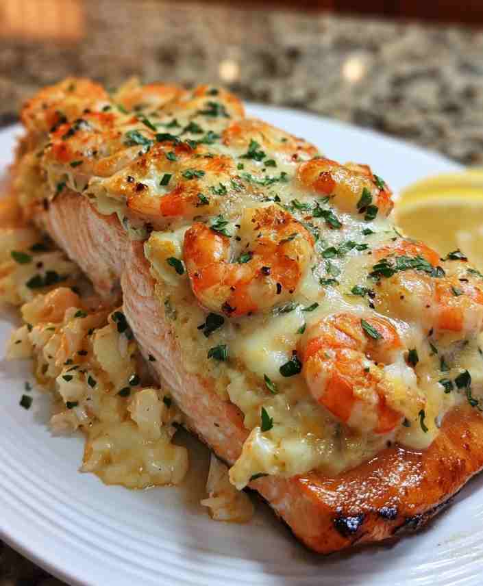 Crab Shrimp Stuffed Salmon is the kind of dish that instantly feels special. Rich, buttery salmon is filled with a creamy seafood stuffing made from sweet crab, juicy shrimp, fresh herbs, and bright lemon. It’s elegant enough for date nights and celebrations, yet approachable enough to prepare at home without stress. Every bite delivers tender salmon, luxurious seafood filling, and balanced seasoning that feels restaurant-worthy—but fresher and more personal.