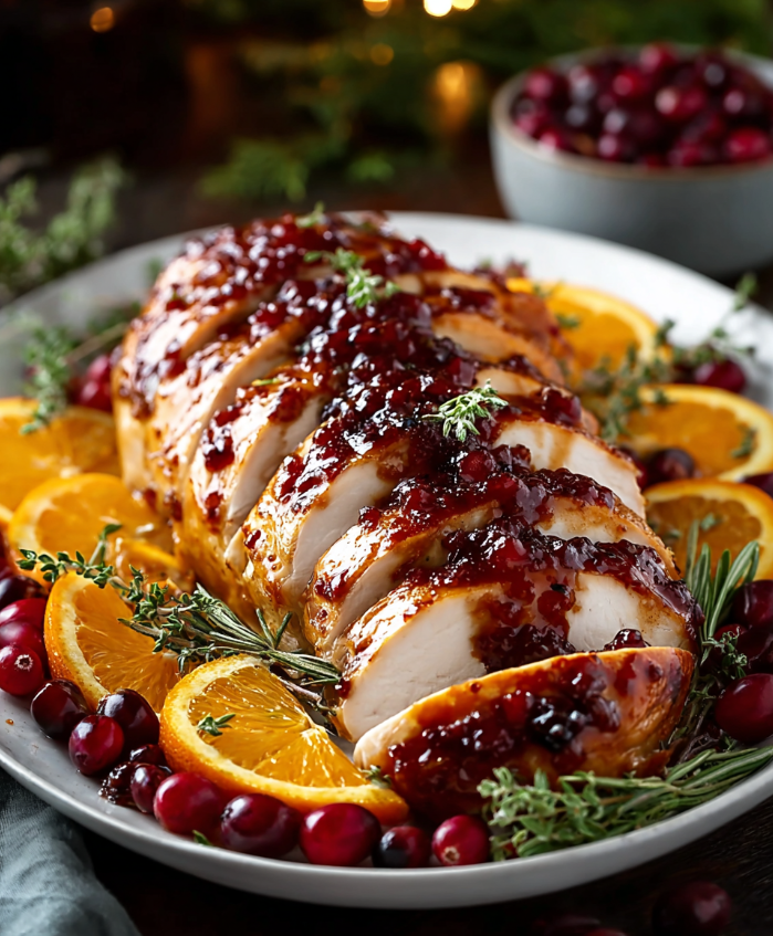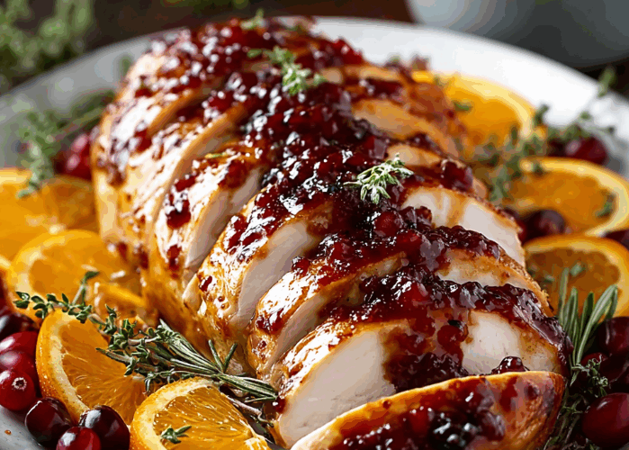A bright, festive, and flavor-packed turkey dish that brings together the best of the holidays, juicy roasted turkey breast brushed with a tangy-sweet cranberry orange glaze. Perfect for intimate gatherings, weeknight feasts, or anyone craving a holiday centerpiece without cooking a full bird.