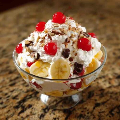 Creamy Banana Split Fluff Salad Recipe – Easy No-Bake Dessert Everyone Loves