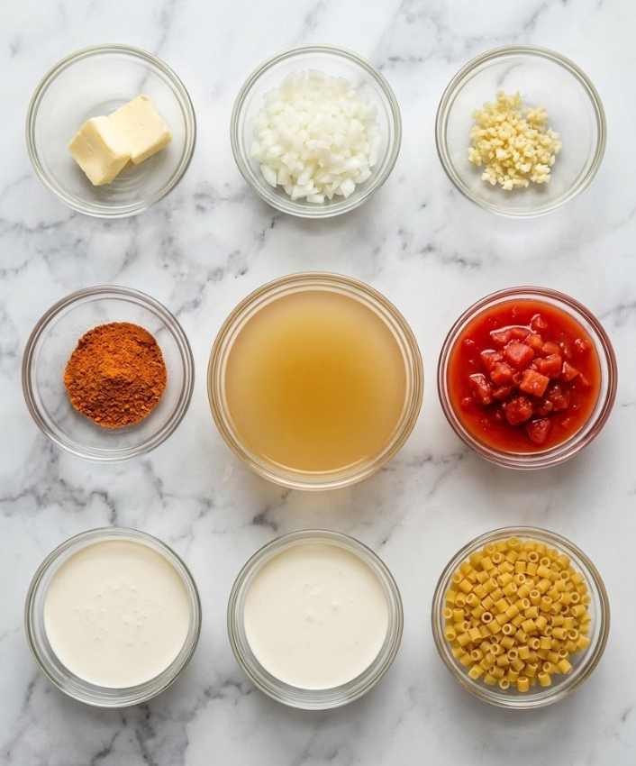 - Build the broth: Remove the pot from heat briefly. Stir in chicken broth, diced tomatoes (with juices), and heavy cream. Return to heat and bring the mixture to a gentle boil. Once boiling, reduce to a rapid simmer.