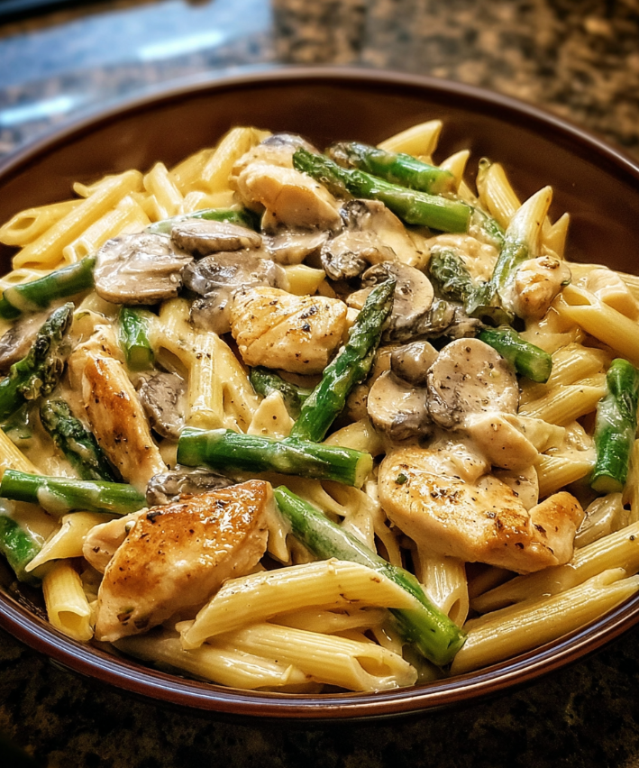 Creamy Mushroom and Asparagus Chicken Penne (Easy 35-Minute Dinner)
