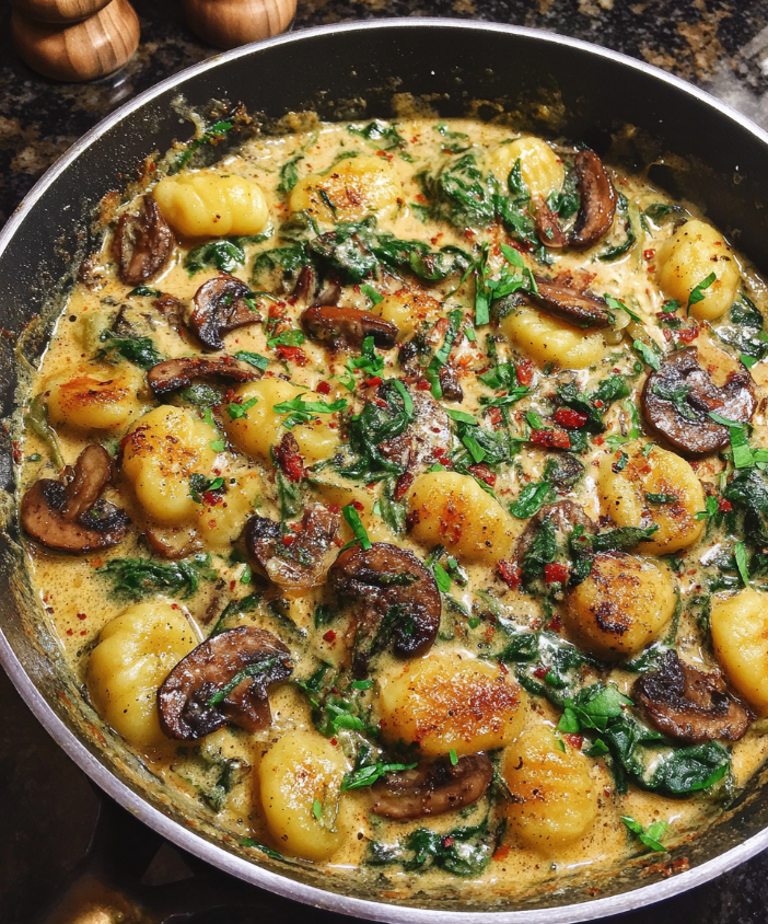 Creamy Spinach and Mushroom Gnocchi (One-Pan, 20-Minute Comfort Dinner)