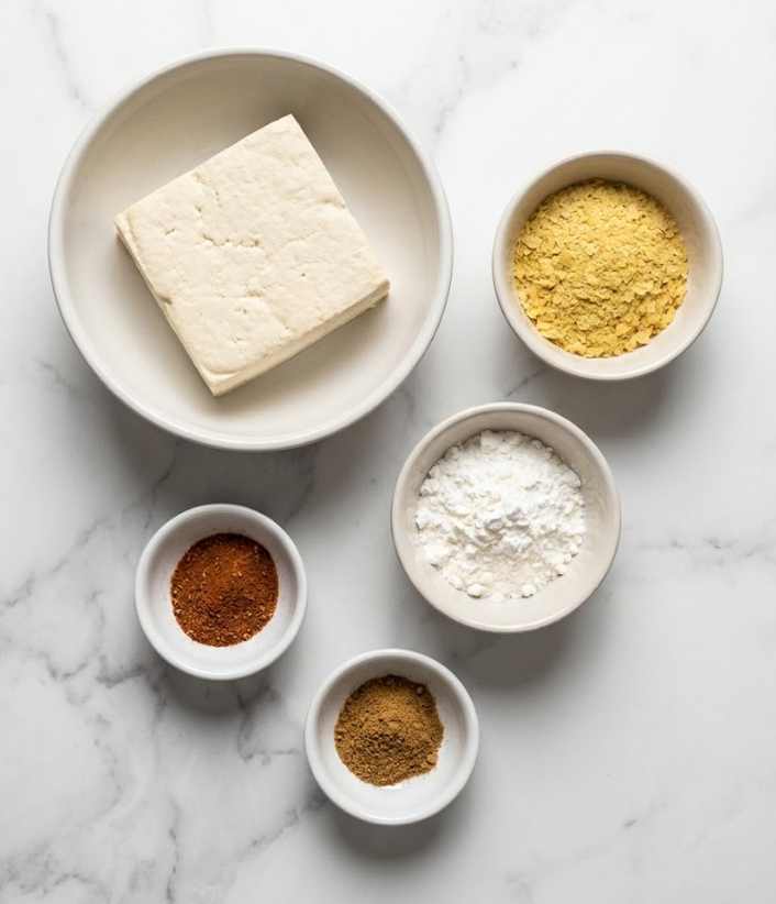 - Bake the Tofu: Preheat oven to 425°F (220°C). Shred tofu using the large holes of a box grater over a parchment-lined baking sheet. Toss shreds with nutritional yeast, cornstarch, chipotle sauce, adobo seasoning, coriander, oil, and salt. Spread evenly and bake for 15 minutes. Flip, then bake another 5–10 minutes until golden and chewy