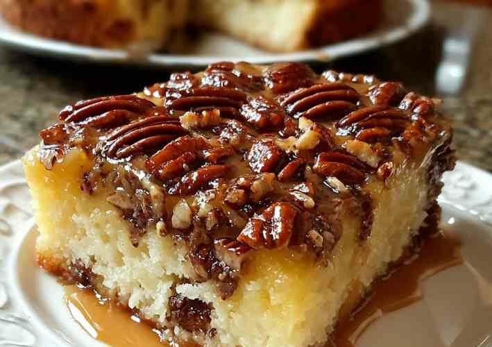 The Do Nothing Tornado Cake is a nostalgic, easy-to-make dessert that’s perfect for family gatherings, potlucks, or casual treats. Bursting with the tropical sweetness of crushed pineapple and topped with a rich, gooey coconut topping, this cake requires minimal effort while delivering maximum flavor. Its moist texture, nutty crunch from pecans, and caramelized coconut topping make it a crowd-pleasing classic that’s as delicious as it is simple.