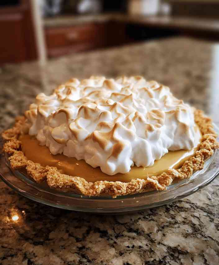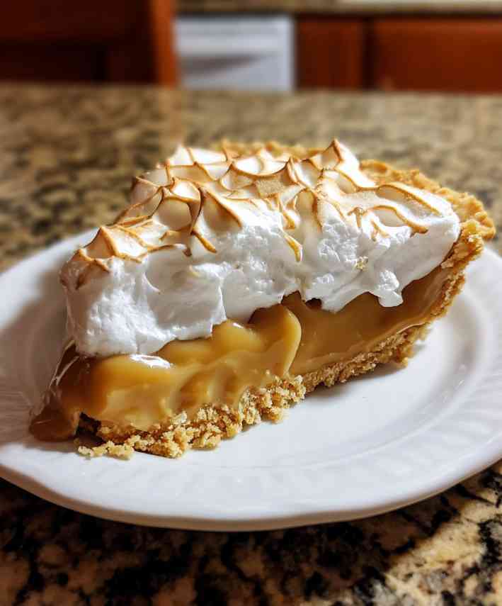 It’s a pie that smells like family gatherings and Sunday afternoons, when laughter mingles with the sound of a spoon tapping a mixing bowl. The creamy, brown-sugar filling and cloud-soft meringue are proof that a little Southern patience and a touch of butter can still work magic.