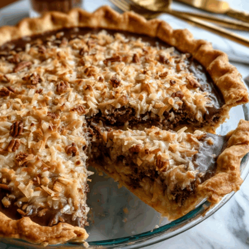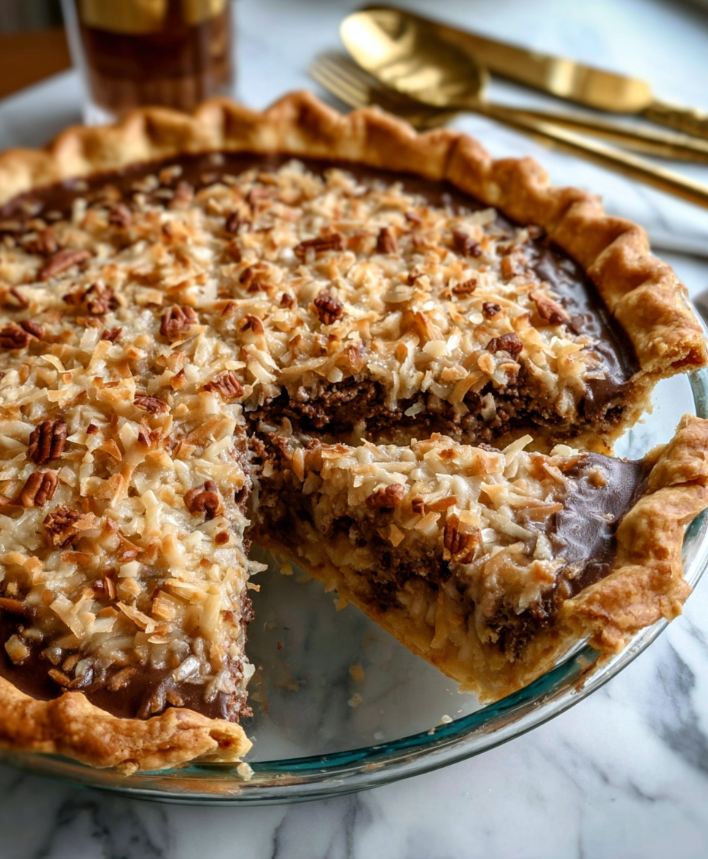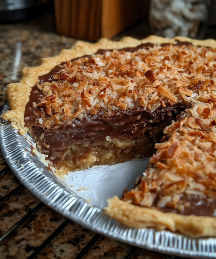 Easy German Chocolate Pie with Coconut Pecan Topping