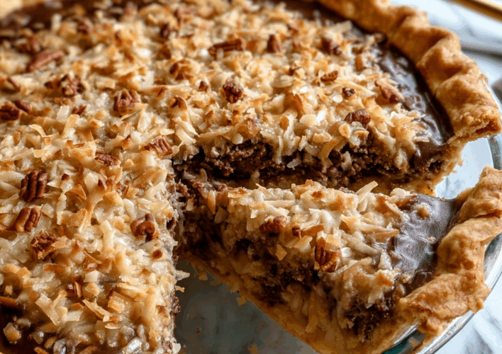 Easy German Chocolate Pie with Coconut Pecan Topping