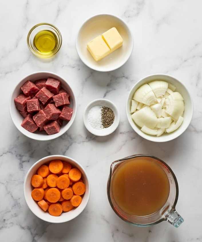 • Slow Cooker Method: Brown the beef first, then transfer to a slow cooker. Add onions, carrots, cider, and broth. Cook on Low for 7–8 hours or High for 3–4 hours.