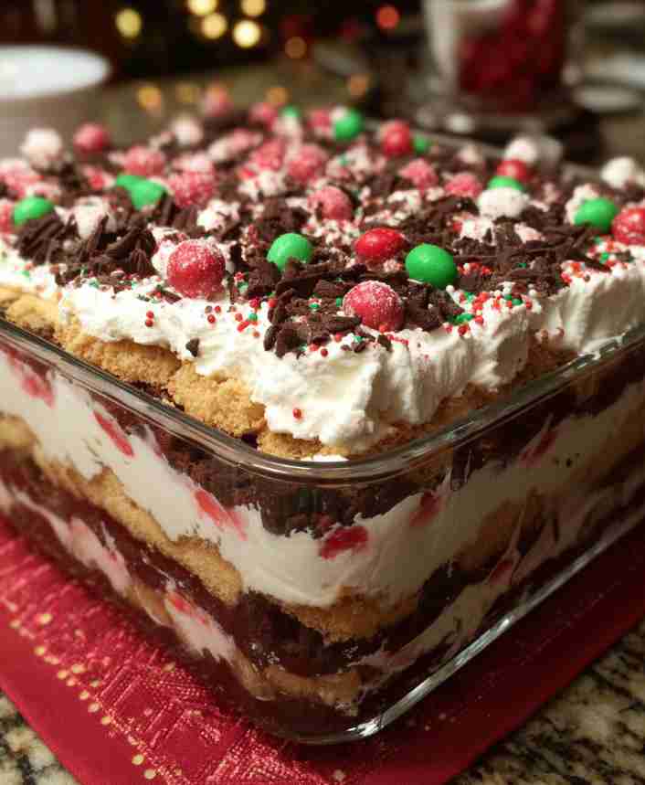Nothing captures the magic of the holidays like a dessert that blends creamy layers, festive flavors, and effortless preparation. This Christmas Cookie Lasagna is a no-bake treat made with soft cookies, a velvety cream cheese mixture, and cheerful toppings that bring instant joy to any celebration. It’s easy, customizable, and stunning enough to steal the spotlight at your holiday table.