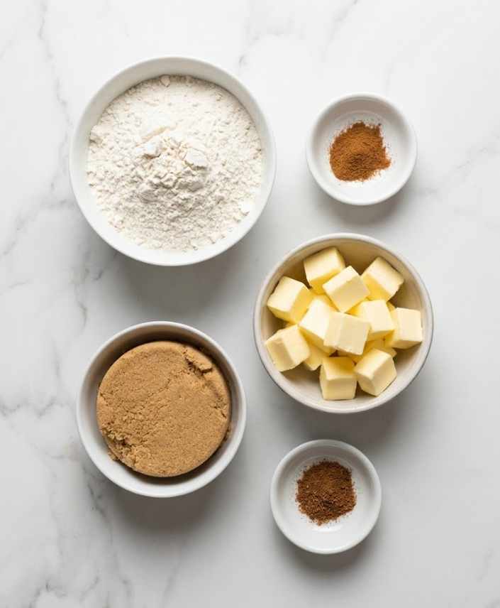 - In a medium bowl, whisk together flour, brown sugar, cinnamon, and nutmeg.