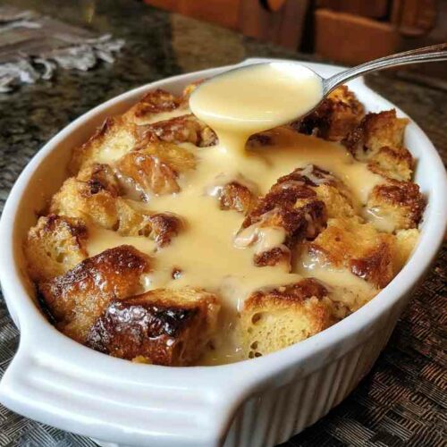 This old-fashioned bread pudding with warm vanilla sauce is the perfect comforting dessert that never goes out of style. Made with simple ingredients and baked to golden perfection, it delivers nostalgic flavor and a soft custardy texture every time. Whether you’re serving guests or treating yourself, this beloved recipe is guaranteed to become a family favorite.