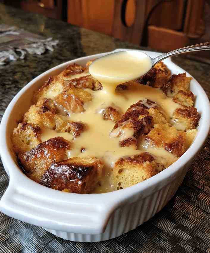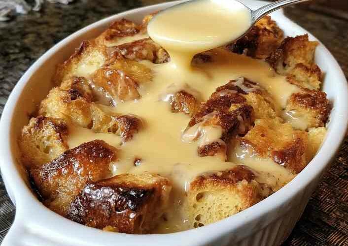 Warm, comforting, and irresistibly nostalgic — this homemade bread pudding with creamy vanilla sauce is everything you remember from Grandma’s kitchen. Soft custard-soaked bread baked to golden perfection and drizzled with silky vanilla sauce makes this dessert a timeless favorite. Perfect for holidays, family gatherings, or cozy nights at home, this old-fashioned recipe is simple, hearty, and absolutely delicious.