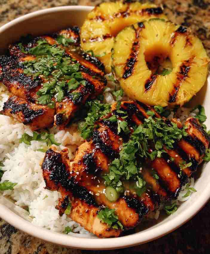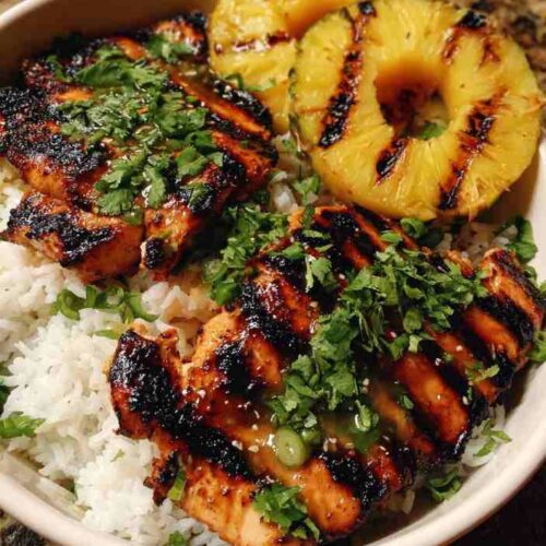 Grilled Chicken and Pineapple Bowls with Coconut Rice combine juicy marinated chicken, smoky caramelized pineapple, and creamy coconut-lime jasmine rice for a vibrant, tropical-inspired meal that’s both satisfying and easy to prepare.