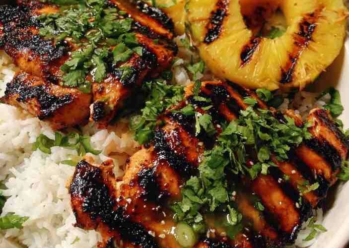 Grilled Chicken and Pineapple Bowls with Coconut Rice