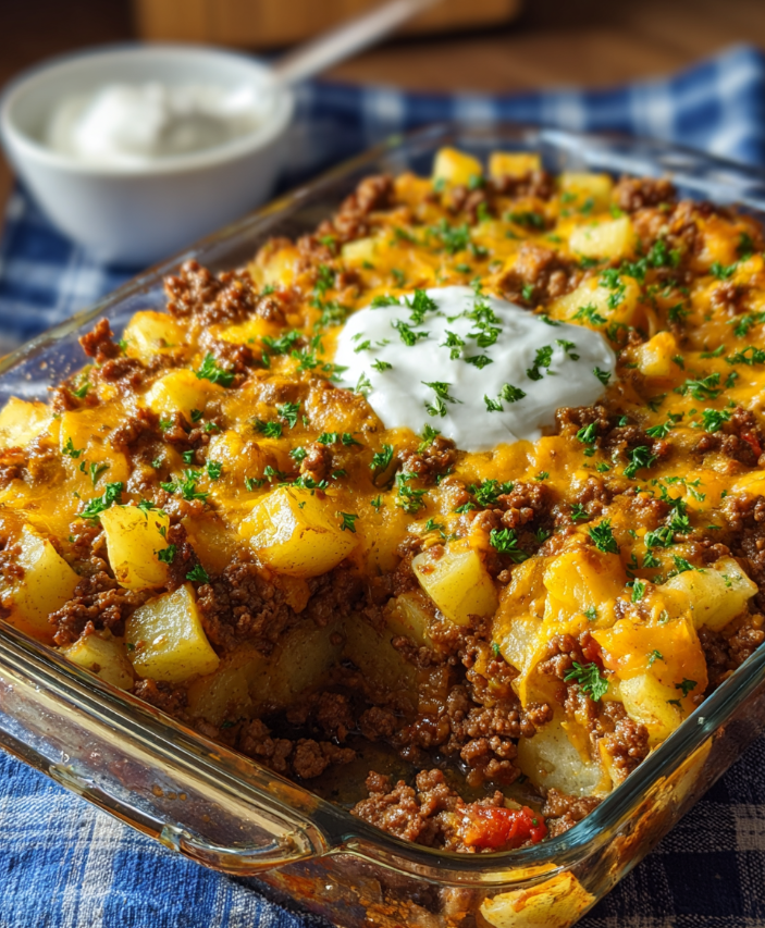 Ground Beef and Potatoes Casserole – Easy, Cheesy & Comforting Recipe