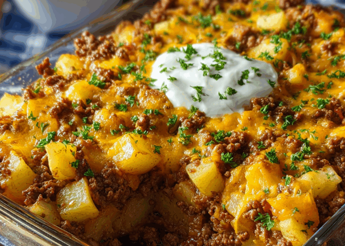 Ground Beef and Potatoes Casserole – Easy, Cheesy & Comforting Recipe
