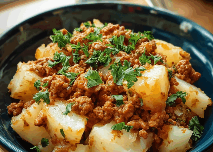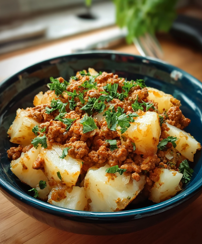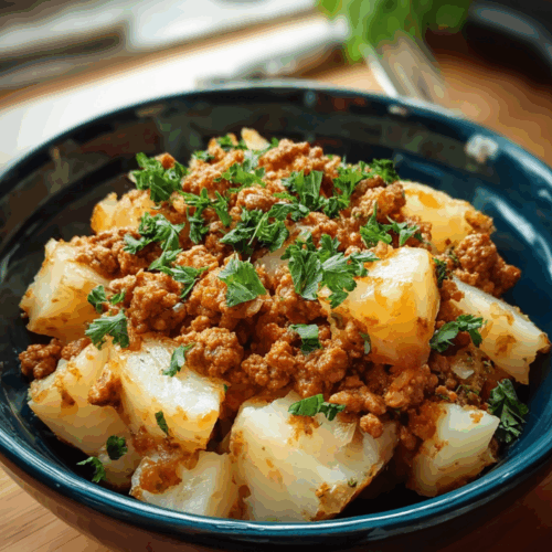 There’s a quiet kind of comfort in the sound of onions sizzling in olive oil — that familiar crackle that tells you something delicious is about to happen. This ground turkey with potatoes skillet captures that feeling perfectly: cozy, hearty, and just simple enough for a weeknight dinner that feels homemade from the first bite.