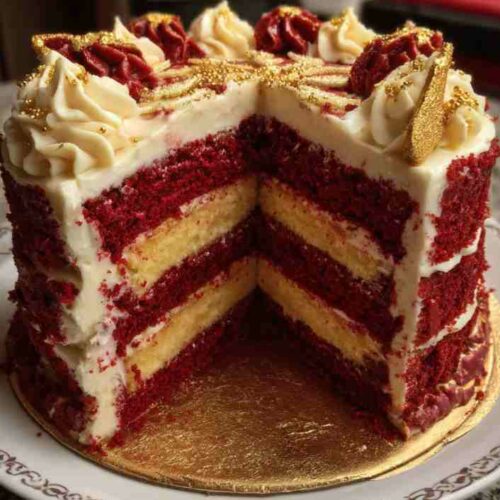 Bring a touch of wizarding magic to your kitchen with this Homemade Gryffindor Layer Cake. Inspired by the bold red and gold colors of Gryffindor House, this stunning dessert features moist red velvet cake layers, rich cream cheese frosting, and shimmering golden accents. It’s the perfect centerpiece for themed parties, birthdays, holidays, or any celebration where you want to impress with both flavor and flair.