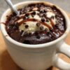Place the mug in the microwave and cook on high for 90 seconds. Cooking time may vary by microwave wattage, so check for doneness — the cake should spring back lightly when touched.