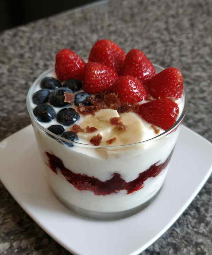- Add a layer of yogurt followed by a small handful of berries. Repeat layers, finishing with yogurt on top.