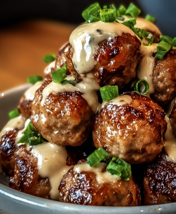 • Serve & Garnish: Arrange warm meatballs on a platter, drizzle with the spicy mayo (or serve it on the side), and sprinkle with sesame seeds and scallions.