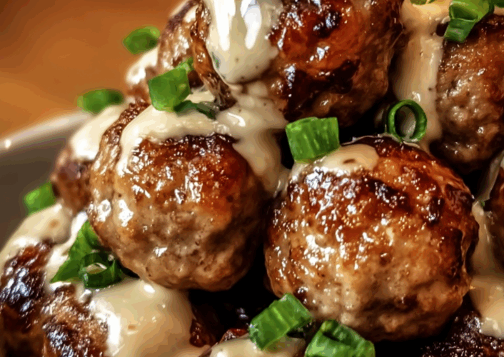 • Serve & Garnish: Arrange warm meatballs on a platter, drizzle with the spicy mayo (or serve it on the side), and sprinkle with sesame seeds and scallions.