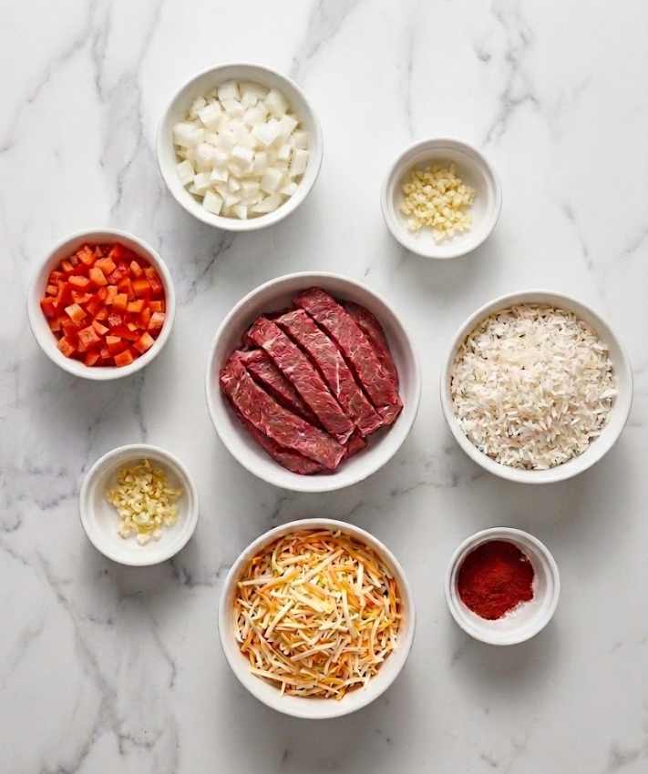 Whether you’re feeding a hungry crowd or winding down after a long day, this recipe strikes that rare balance between easy and extraordinary. Think tender, juicy steak slices tangled with buttery rice, melted cheese, and a hint of Tex-Mex spice, basically, a hug in skillet form.