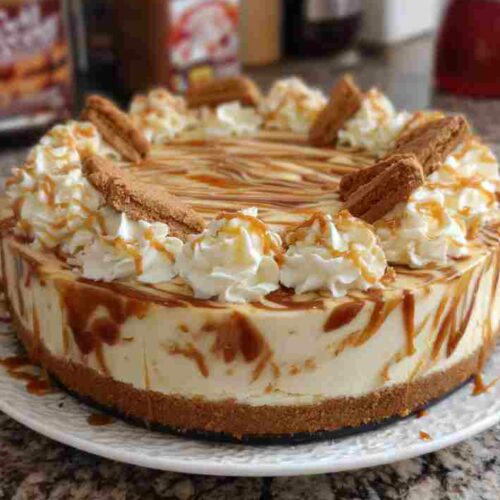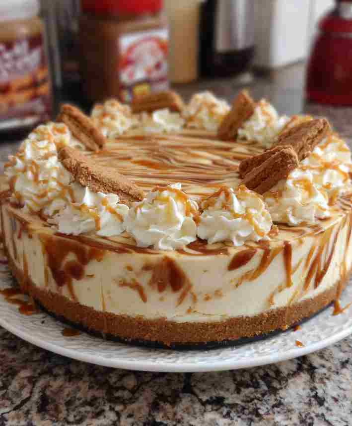A creamy, indulgent cheesecake with a buttery biscuit base, silky white chocolate filling, and a gorgeous Biscoff swirl.