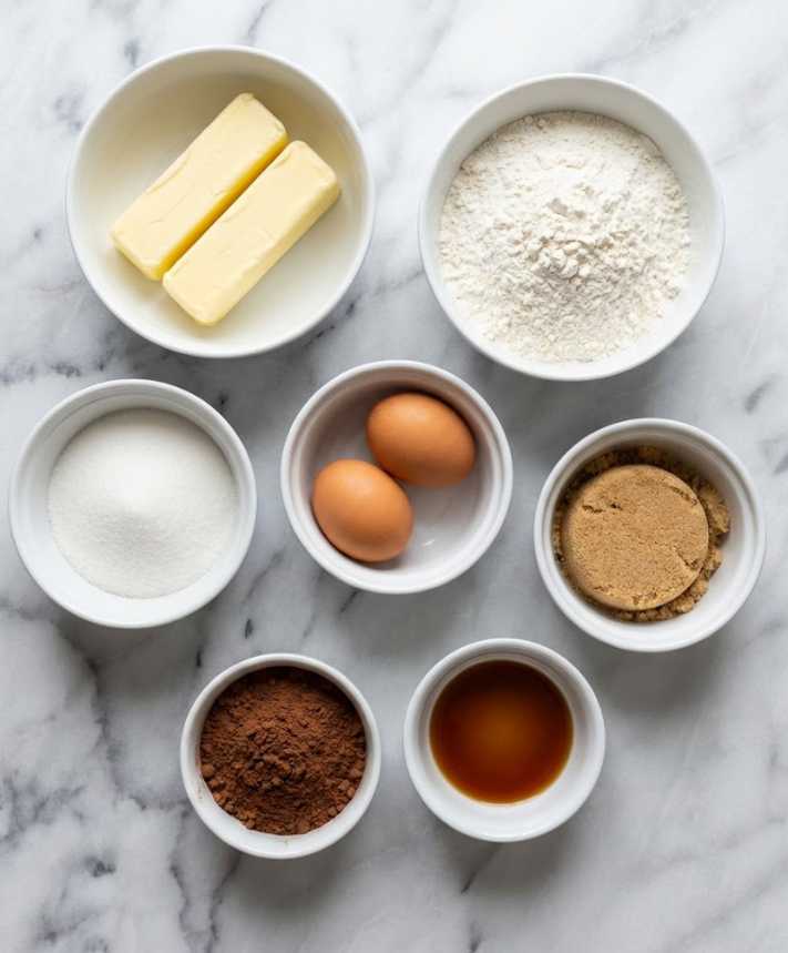 - In a large bowl, cream together butter, granulated sugar, and brown sugar until light and fluffy. Add eggs one at a time, mixing well, then stir in vanilla.