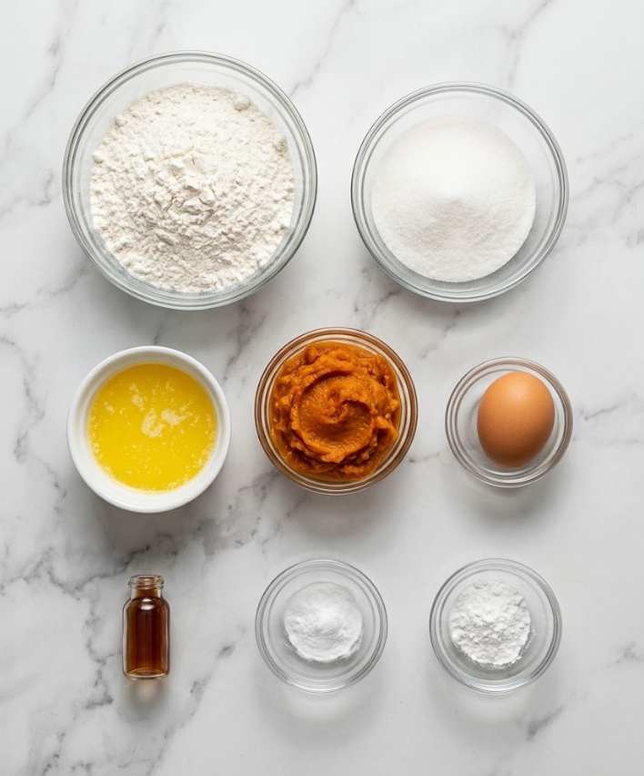 - Mix the Wet Ingredients: In a medium bowl, whisk together pumpkin puree, melted butter, sugar, egg, and vanilla until smooth and glossy.
