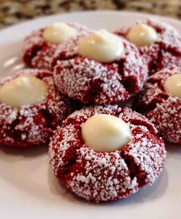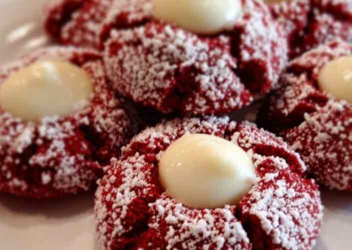 These Red Velvet Cream Cheese Thumbprint Cookies are soft, festive, and irresistibly delicious. With their rich flavor and creamy centers, they’re the kind of dessert that disappears fast—so you might want to make a double batch.
