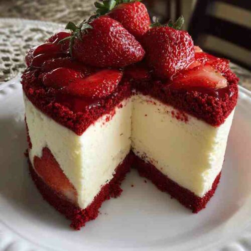 This Red Velvet Strawberry Cheesecake brings together color, flavor, and irresistible texture in one unforgettable dessert. With its moist red velvet base, creamy cheesecake layer, and glossy homemade strawberry topping, it’s a dessert worthy of any celebration. Whether you’re baking for a special event or simply treating yourself, this recipe delivers stunning results with straightforward steps. Enjoy every decadent slice!