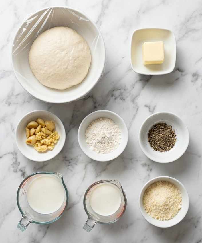 - Make the Creamy Garlic SauceIn a small saucepan, melt butter over medium heat. Add minced roasted garlic and sauté for about 1 minute, just until fragrant.Whisk in flour and cook another minute, stirring constantly to form a light roux. Slowly pour in the milk and half-and-half, whisking to prevent lumps.Add black pepper and cook for about 3 minutes until slightly thickened. Remove from heat and stir in Parmesan until smooth and velvety.