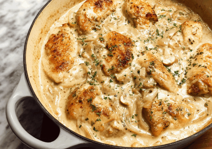 There’s something deeply comforting about a skillet full of creamy, onion-rich chicken after a long day. This Sour Cream and Onion Chicken recipe takes the familiar flavor of that iconic chip and turns it into a cozy, spoon-worthy dinner tender chicken cutlets seared golden, nestled in a silky sour-cream sauce with caramelized onions and just a hint of tang.