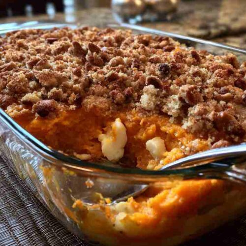 This Southern Sweet Potato Casserole isn’t just a side dish it’s a story of family gatherings, second helpings, and quiet kitchen moments where everyone’s sneaking bites before dinner. The contrast of velvety sweet potatoes and golden pecan crunch creates a kind of balance that feels both nostalgic and new every time you make it.